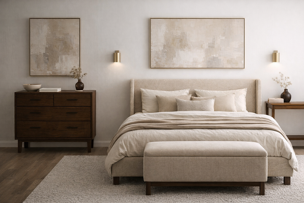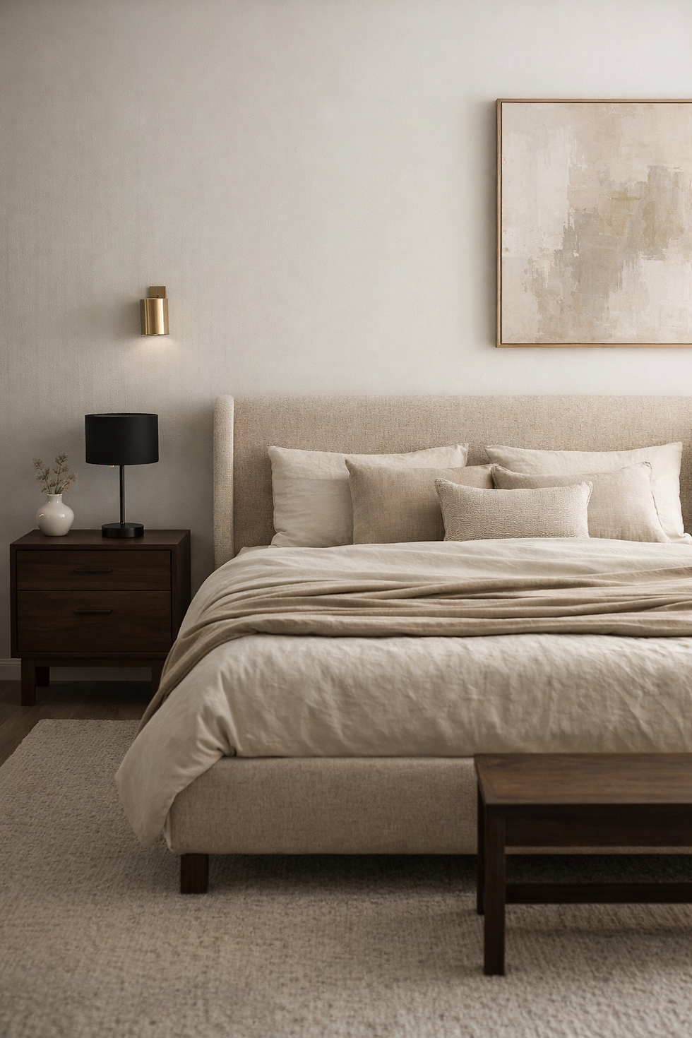 A well-balanced neutral bedroom combines softness with structure, texture with restraint, and warmth with depth.
